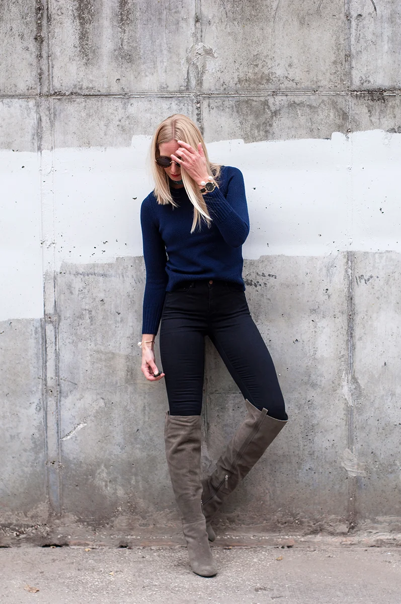 If there's one thing worth investing in for cold weather dressing, it's absolutely another pair of boots. Don't believe the hype; you DON'T have enough. Since I'm obsessed with grey this season (yes, I'm wearing my grey masculine-cut coat again) I figured I'd get a lot of wear out of a pair of grey-suede tall boots. The round toe and block heel make these great for everyday casual wear, and the fact that they're made from actual suede means they'll be wearable for more than a single year. There's so much micro-suede out there right now! The shopping gods definitely shined upon me when I found this Vince Camuto pair for under $250!